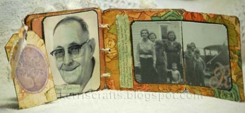 This is a picture of a page out of one of my favorite minis. I made this using drink coasters. It is all about my paternal Great Grandparents.