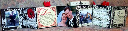 The first thing that inspired me to do something like this was a little box I found at the dollar store! I immediately thought of a love theme album for my husband and I knew I already had the perfect papers to coordinate! There was no special occasion for the album, other than my husband and myself having a great talk that weekend and it sparked the creative drive to do the album.